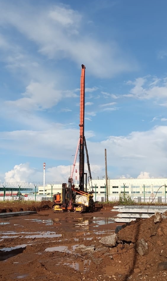 Использование сваебойной установки обеспечит надежное и быстрое закладывание фундамента для нового цеха, что является важным этапом в строительстве. Работы ведутся в соответствии с графиком и соблюдением всех необходимых строительных норм и стандартов.